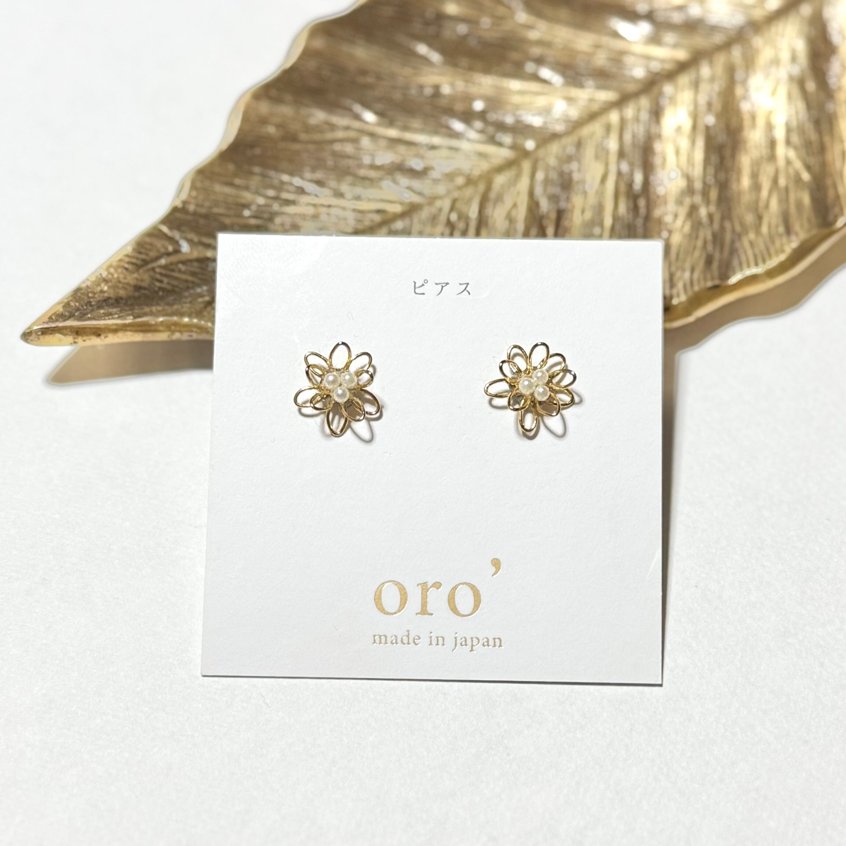 小さな線がいくつも重なった華奢なお花とパールの組み合わせは