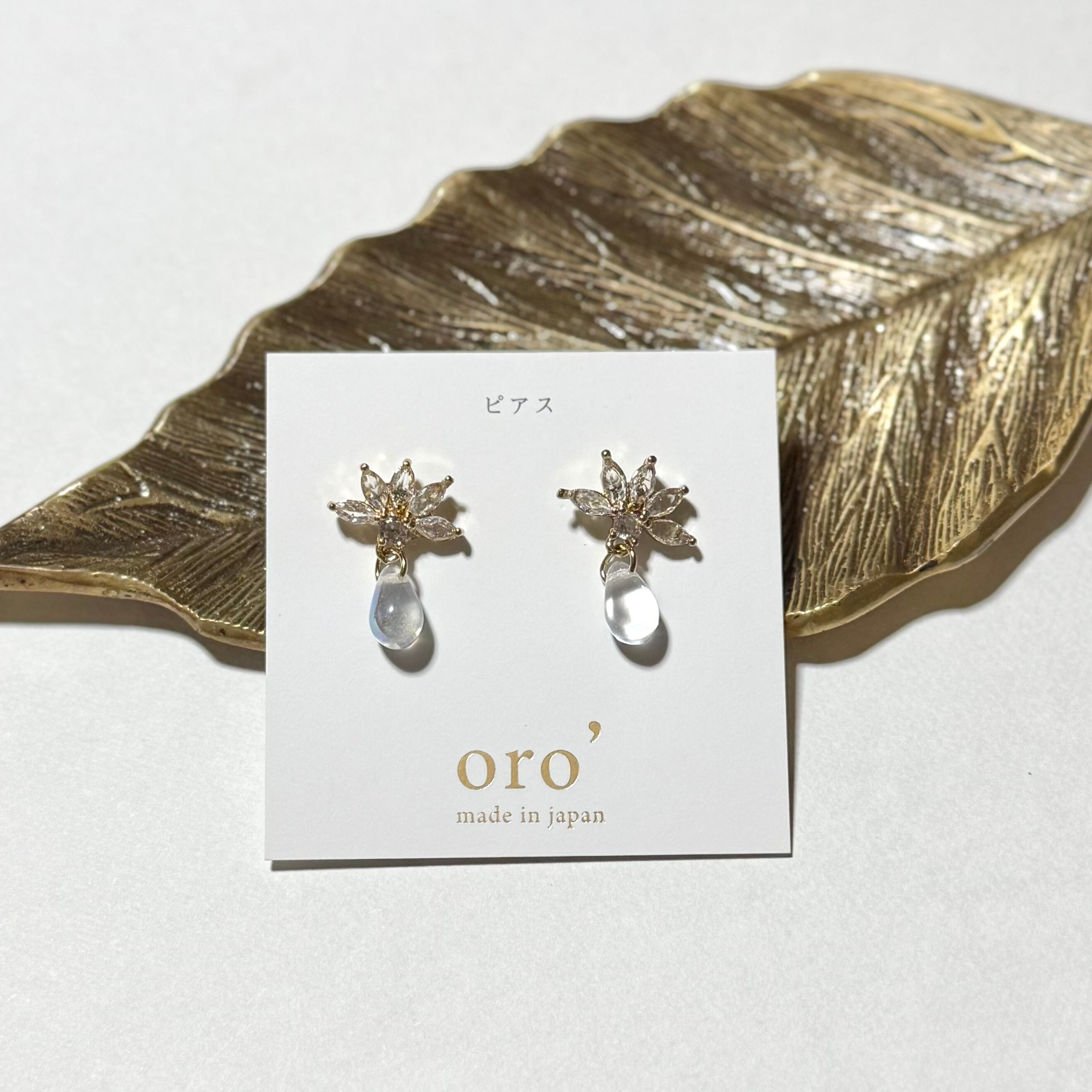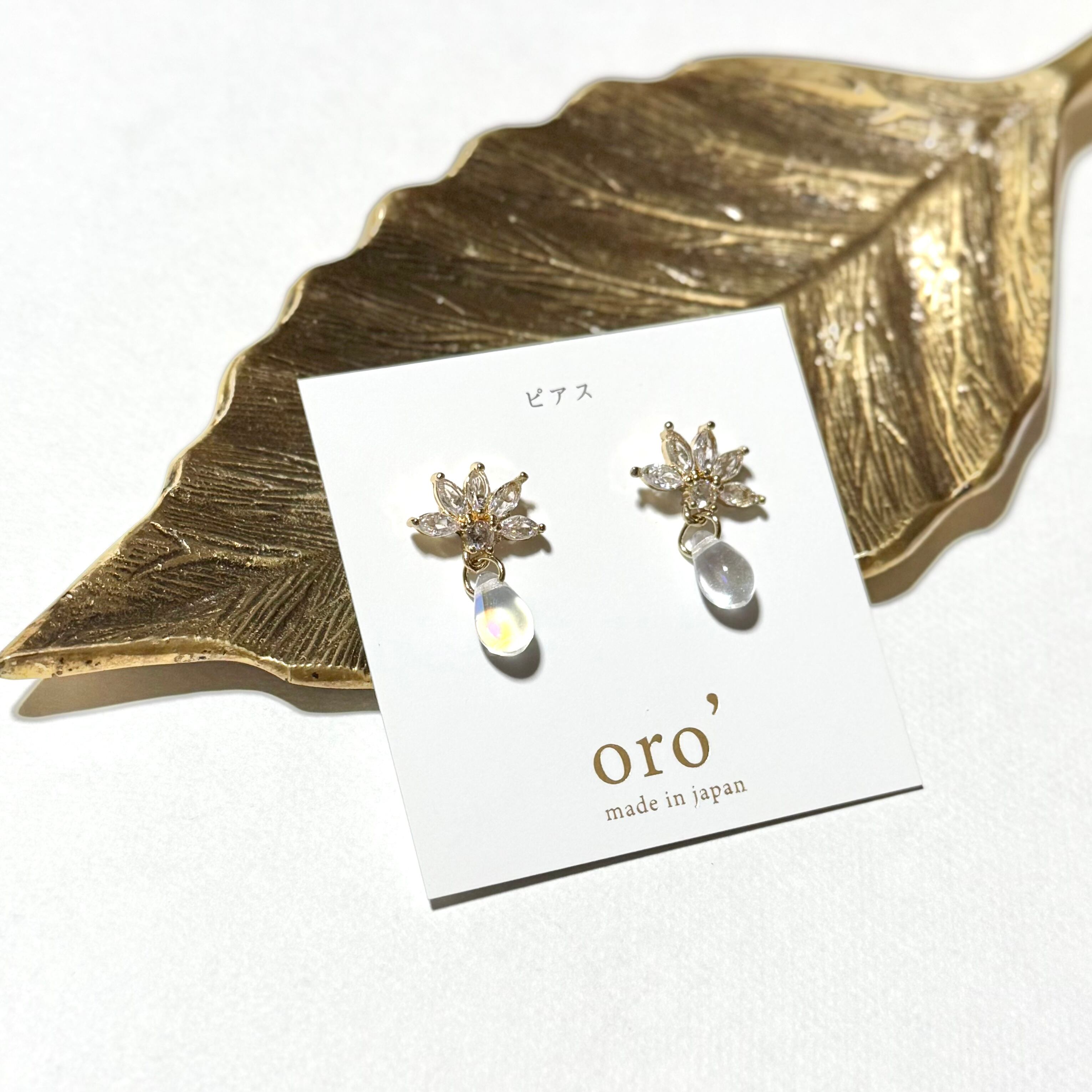 キラキラと輝くお花とオーロラカラーのチェコガラスが