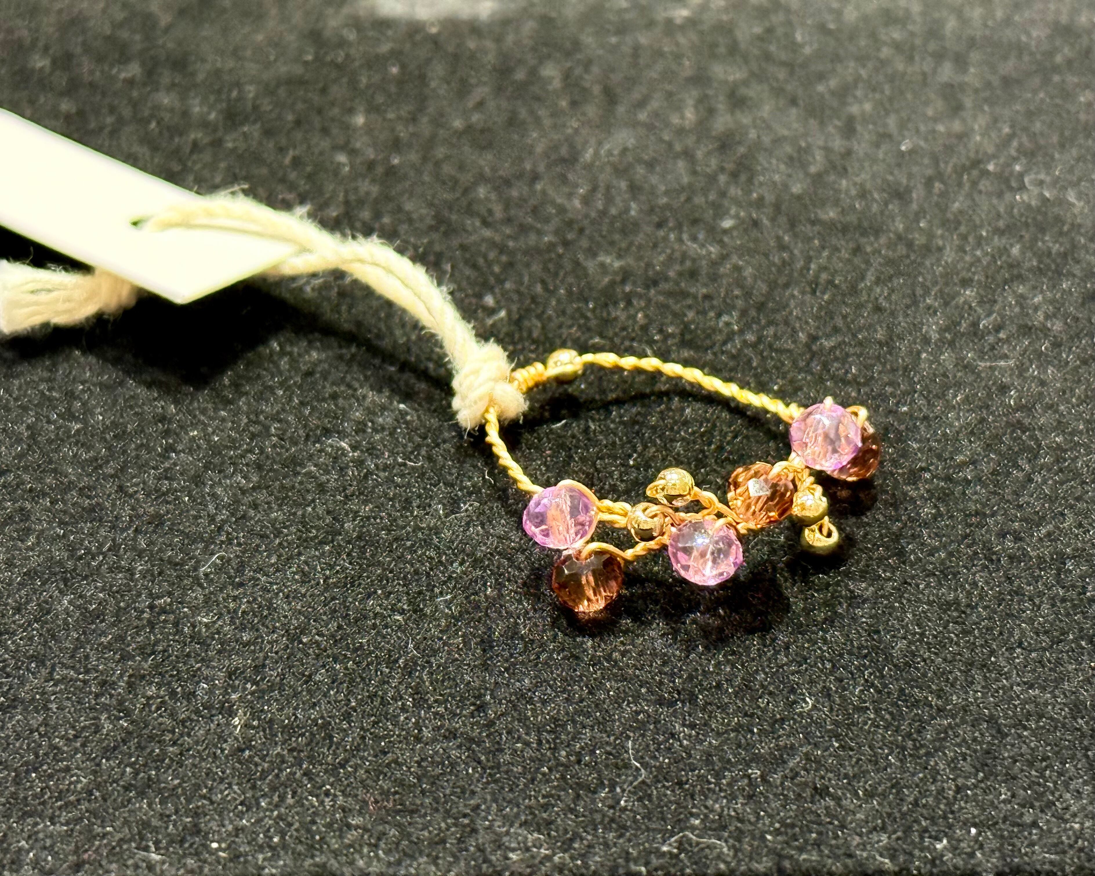 ガラスビーズをワイヤーで編んだ小枝リング