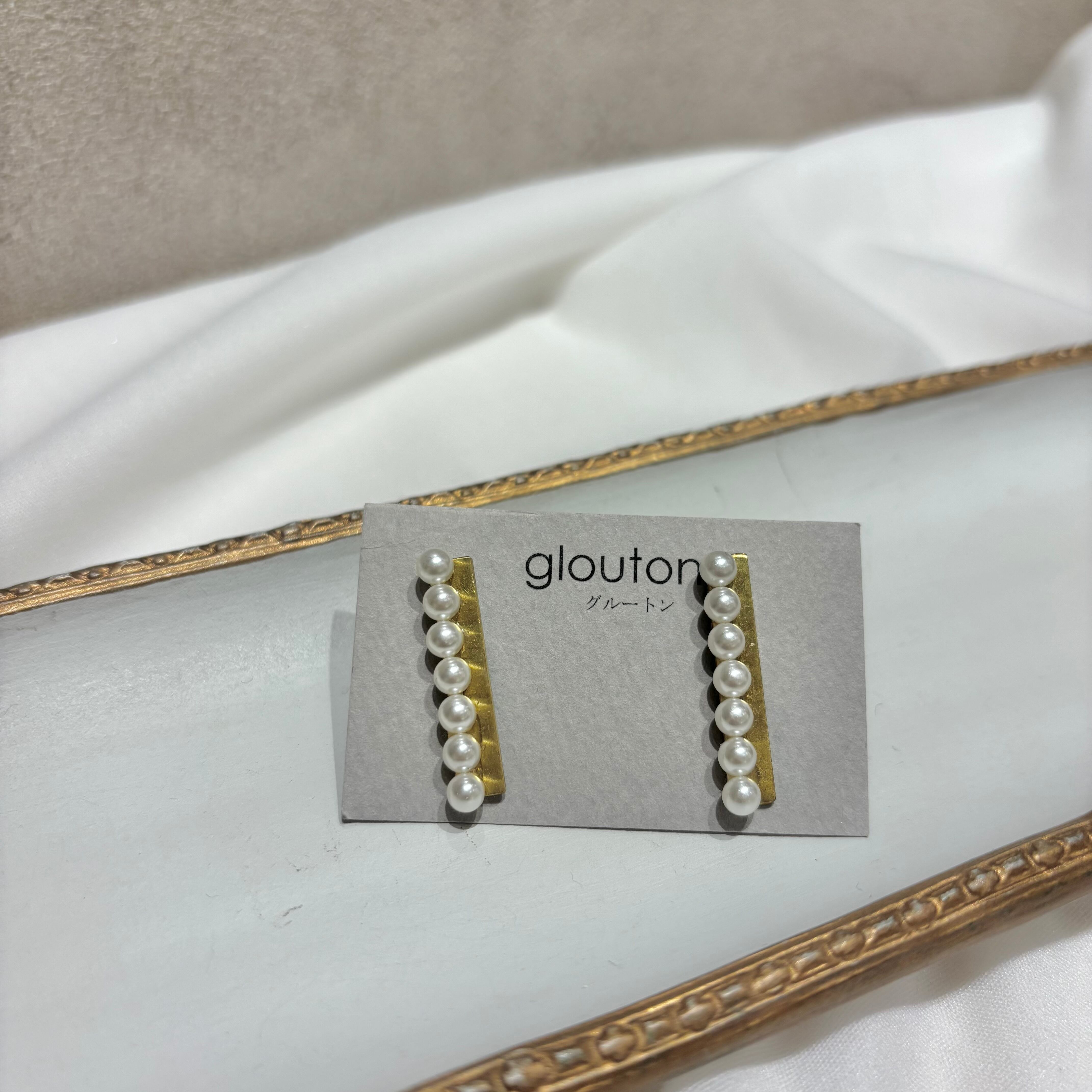 パールで洗練されたデザインの真鍮ピアス。