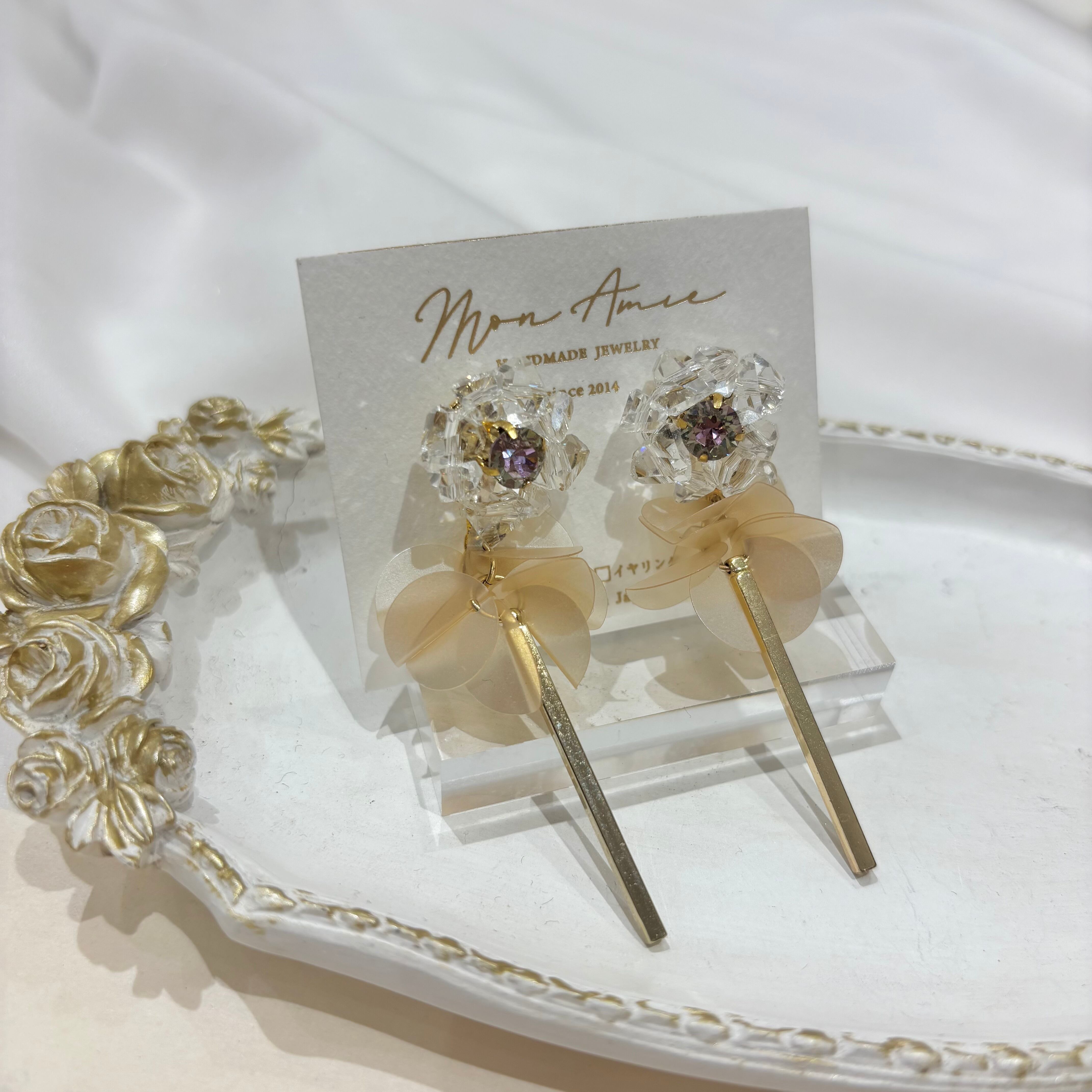 ※こちらは全てハンドメイド作品となります。こちらで検品作業を行なっておりますがデザインにより、左右で形や大きさが若干異なる場合があります。