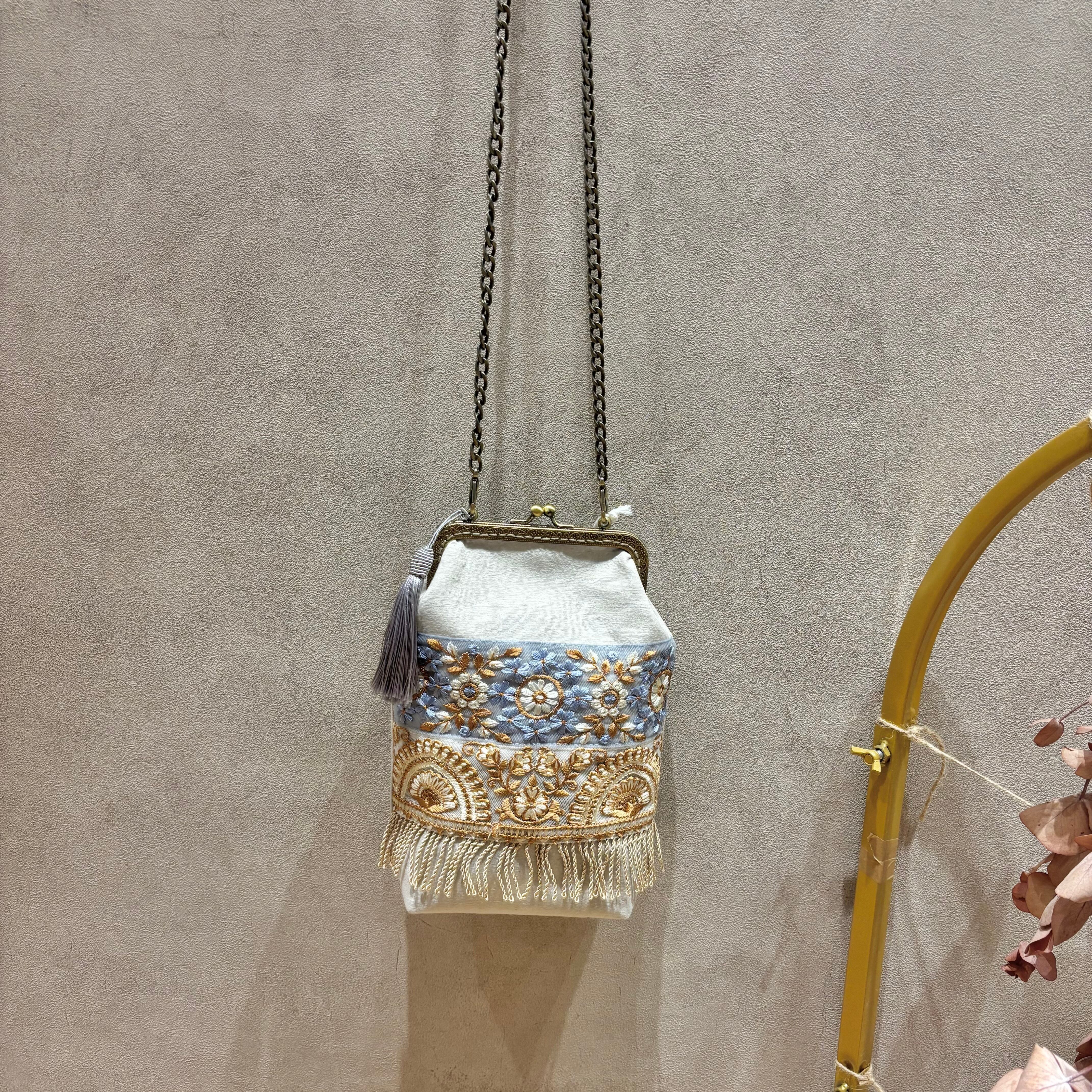 • 【1点限り】がま口インド刺繍バッグ(A67-22)②